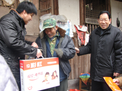 慰问对象有东湖、敖江、长龙、琯头、丹阳、蓼沿、凤城等七个乡镇的孤寡老人、孤儿、特困户等45户。现场发放了慰问金每户500元、电热毯一床(价值近200元)。随后,又步行到无法到场的困难户东湖镇70多岁的退伍军人、孤寡老人章大俤家慰问。他长期靠低保金生活,孤身一人栖身在一个相当破旧不堪的危房中。见此情况,方会长即与当地慈善总会和镇领导商量要加快农村慈善助老安居楼的筹建,尽快让他们早日住上安全、舒适的房子。随同一齐下乡慰问的还有爱心企业苏宁电器的代表。